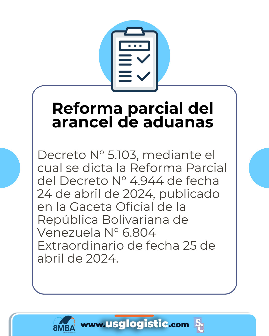 1. Decreto N° 5.103: Reforma Parcial del Arancel de Aduanas